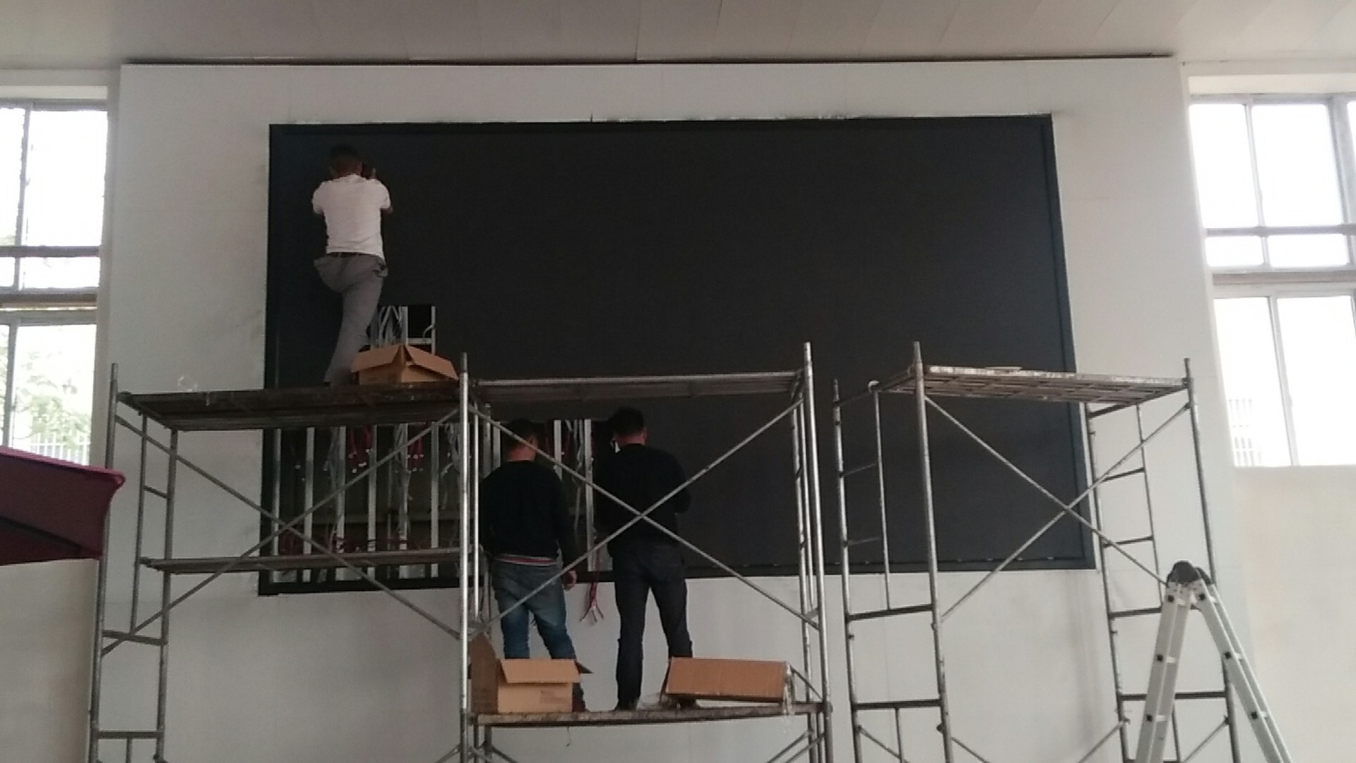 安陽(yáng)學(xué)校P3全彩顯示屏安裝現(xiàn)場(chǎng)